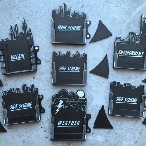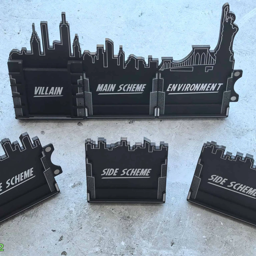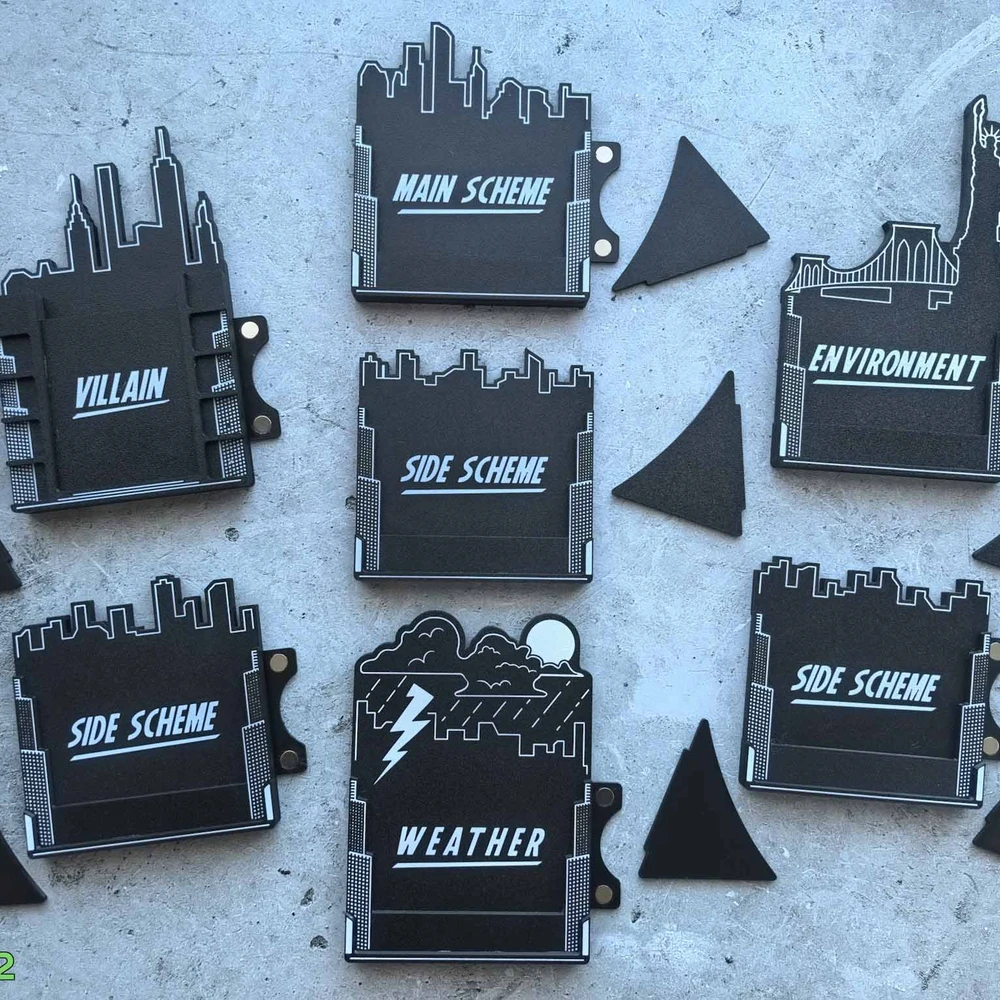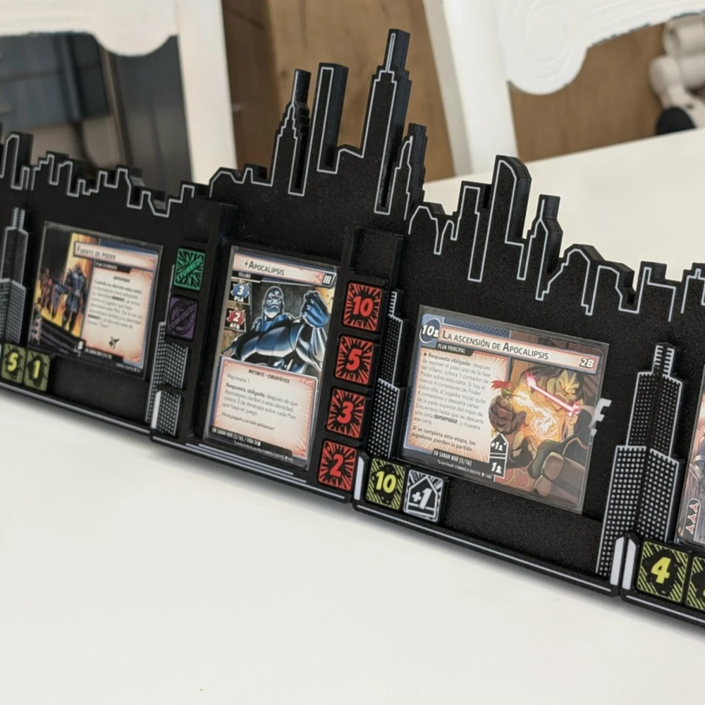 Набор декоративных подставок в стиле городского горизонта для комфортного размещения карт злодеев, схем, погоды и окружения в Marvel Champions: The Card Game.